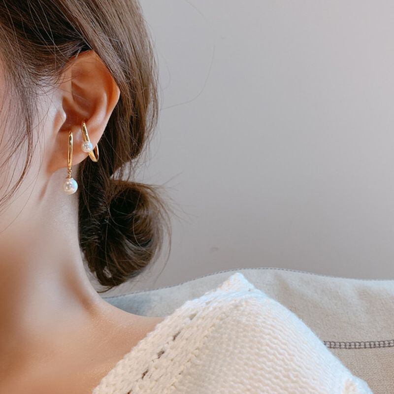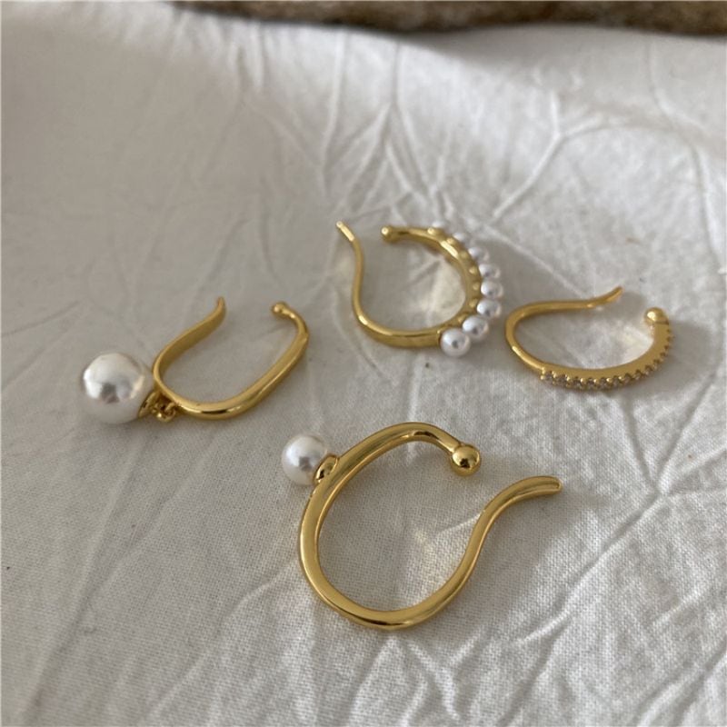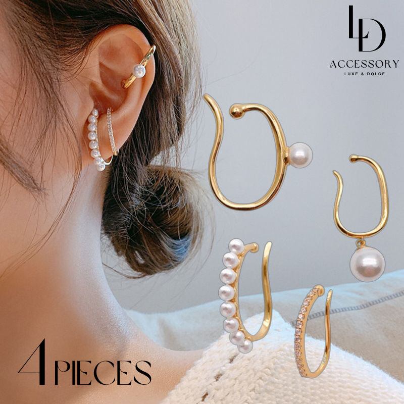 イヤーカフ イヤカフ イヤリング イヤーカフス 大ぶり ラインストーン 片耳用 18Kゴールド 金属アレルギー対応 金アレ 穴なし