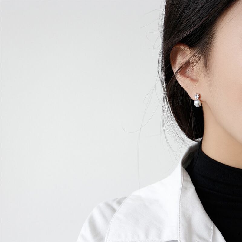 E003 ピアス イヤリング ミニピアス 淡水パール ジルコニア グレー ホワイト silver925 シルバー