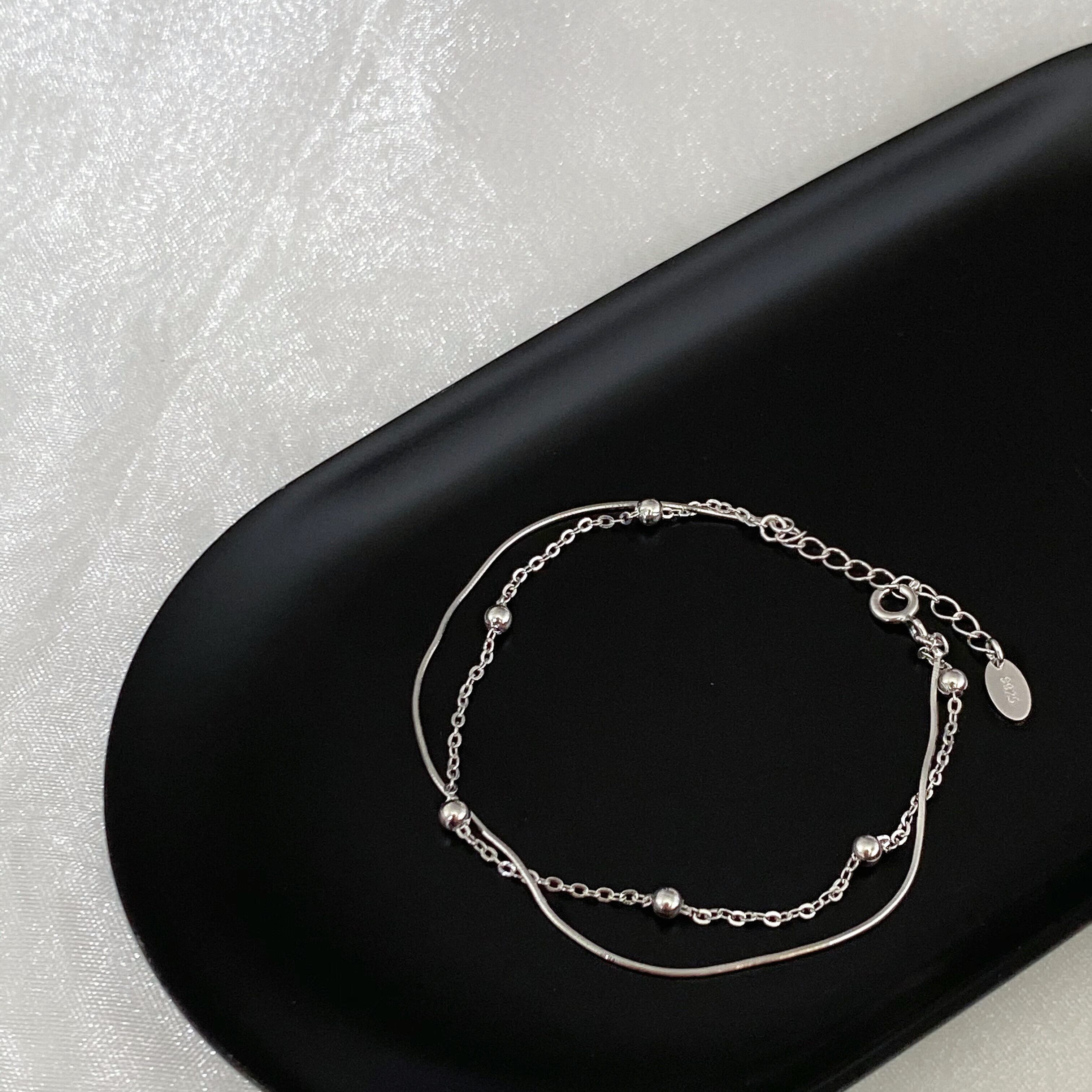PL002 ブレスレット 2連 チェーン silver925 シルバー 足元 シンプル 調節可能