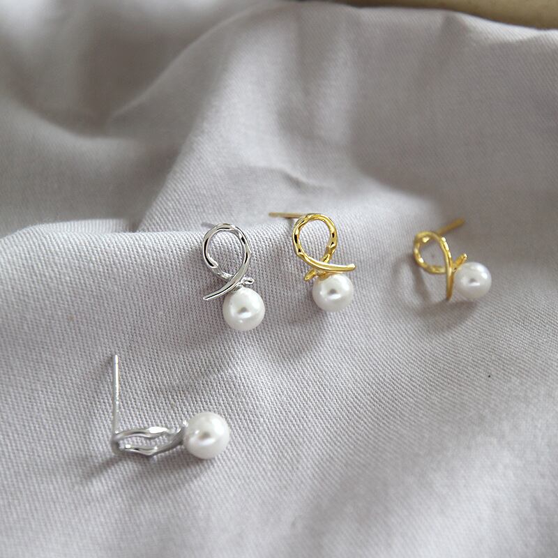 E010 ピアス イヤリング パール リボン ミニピアス かわいい silver925 シルバー ホワイト ゴールド