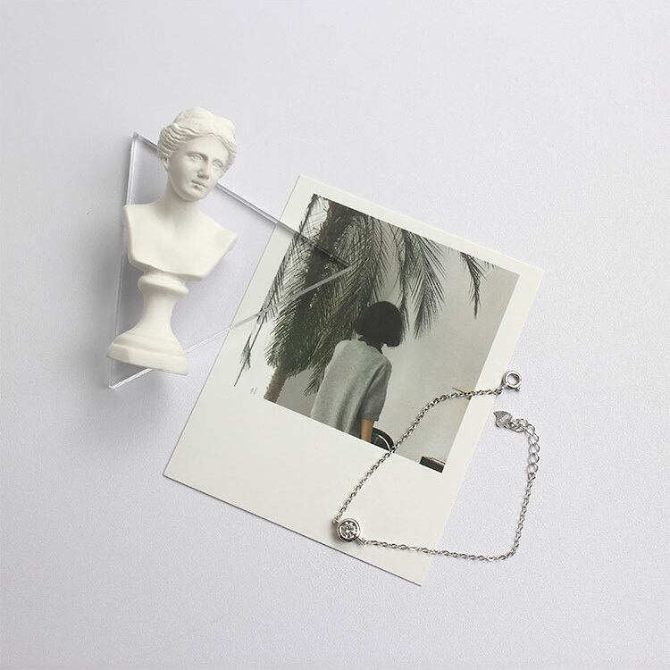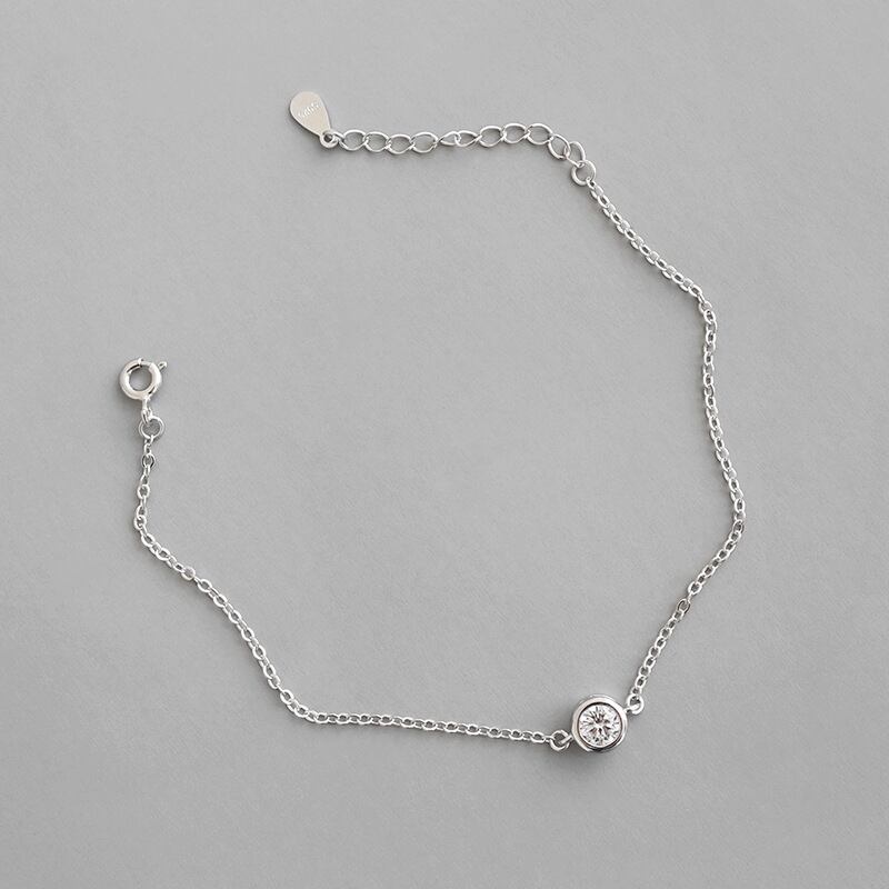 PL010 ブレスレット クリスタル 1粒チェーン silver925 シルバー シンプル 調節可能 ミニマル