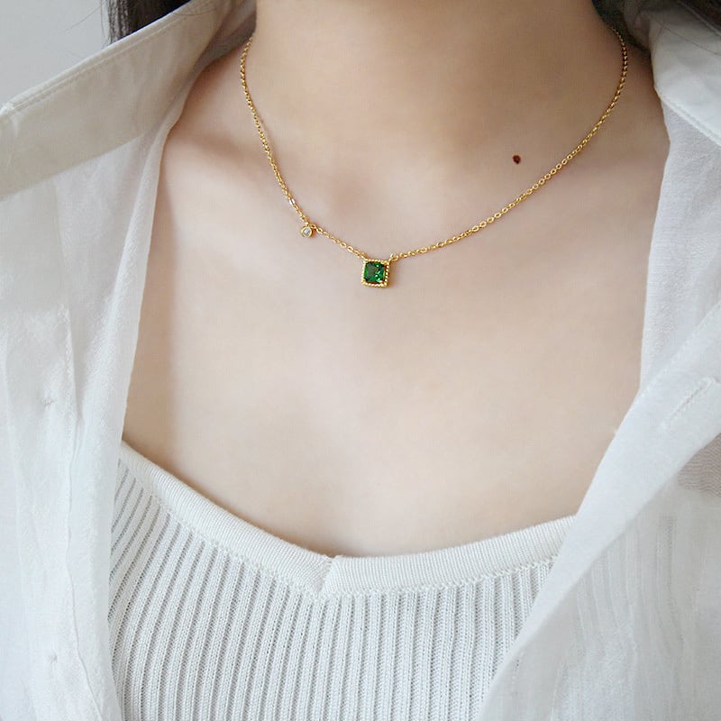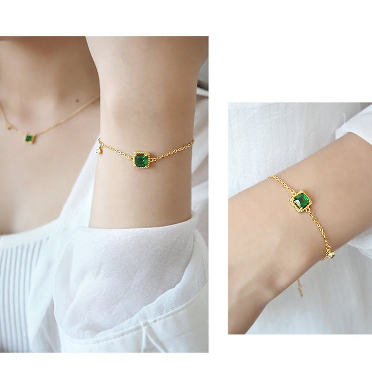 PL008 ブレスレット グリーンスクエア シュガーキューブ チェーン silver925 シルバー ゴールド シンプル 調節可能