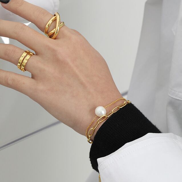 PL009 ブレスレット パール1粒 チェーン silver925 ゴールド シンプル 調節可能