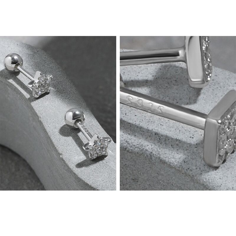 E052 ピアス イヤリング ミニピアス 星 ムーン 図形 ピアッシング 軟骨ピアス キュービック ジルコン silver925 シルバー