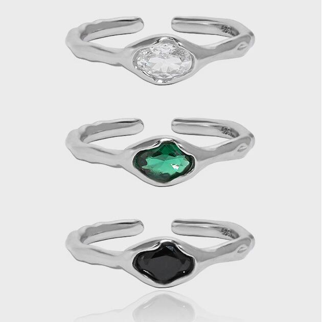 R052 リング 指輪 雫 silver925 シルバー ホワイト グリーン ブラック ニュアンス フリーサイズ シンプル