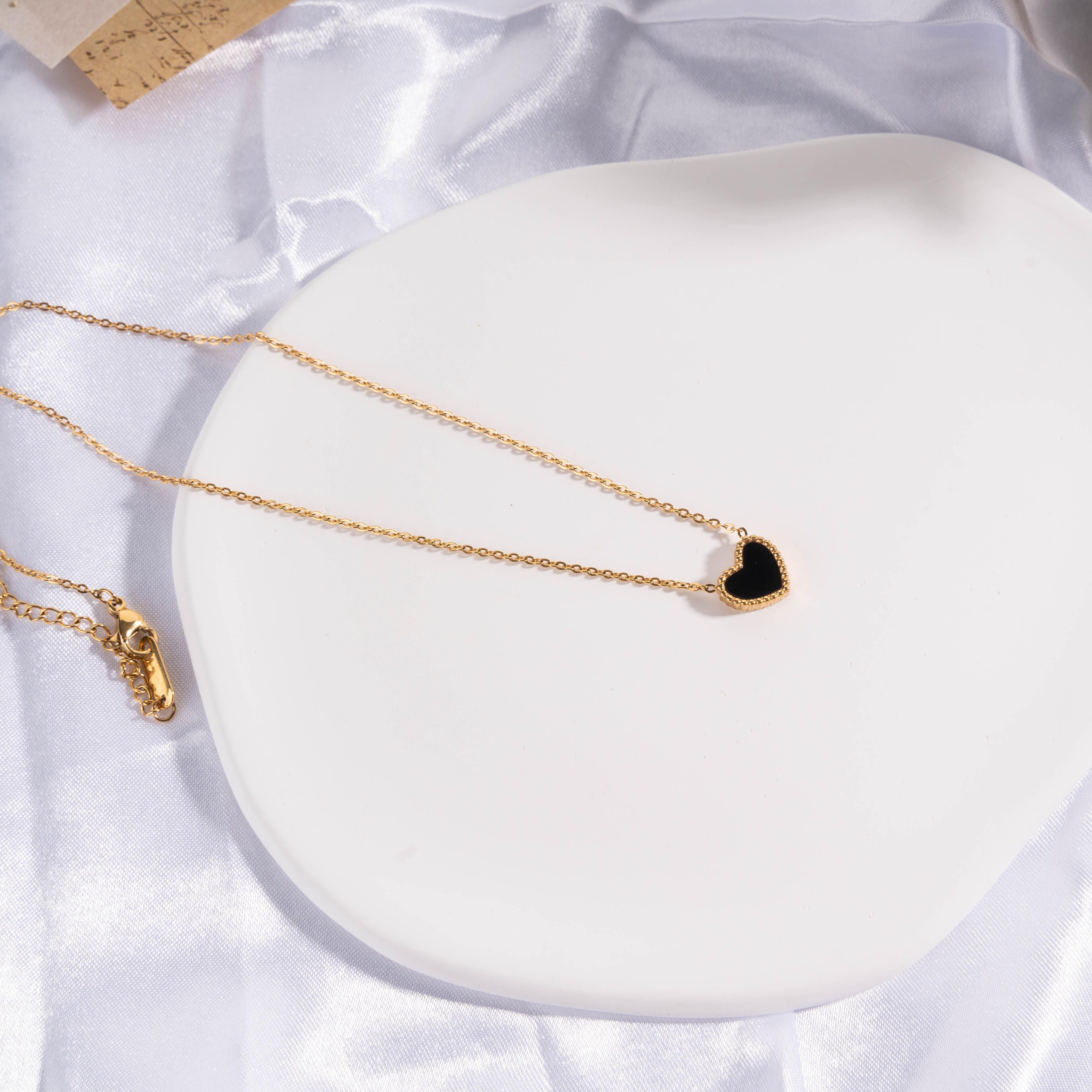 ハートペンダント 両面ブラック&レッド ネックレス #NL009
