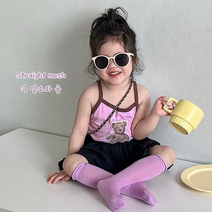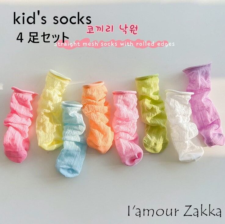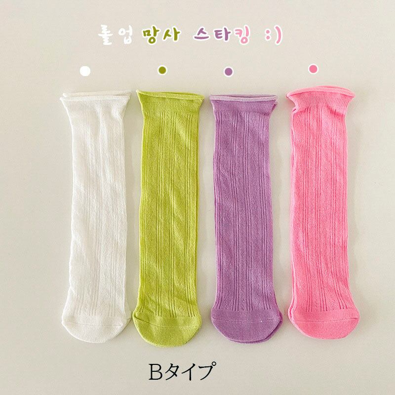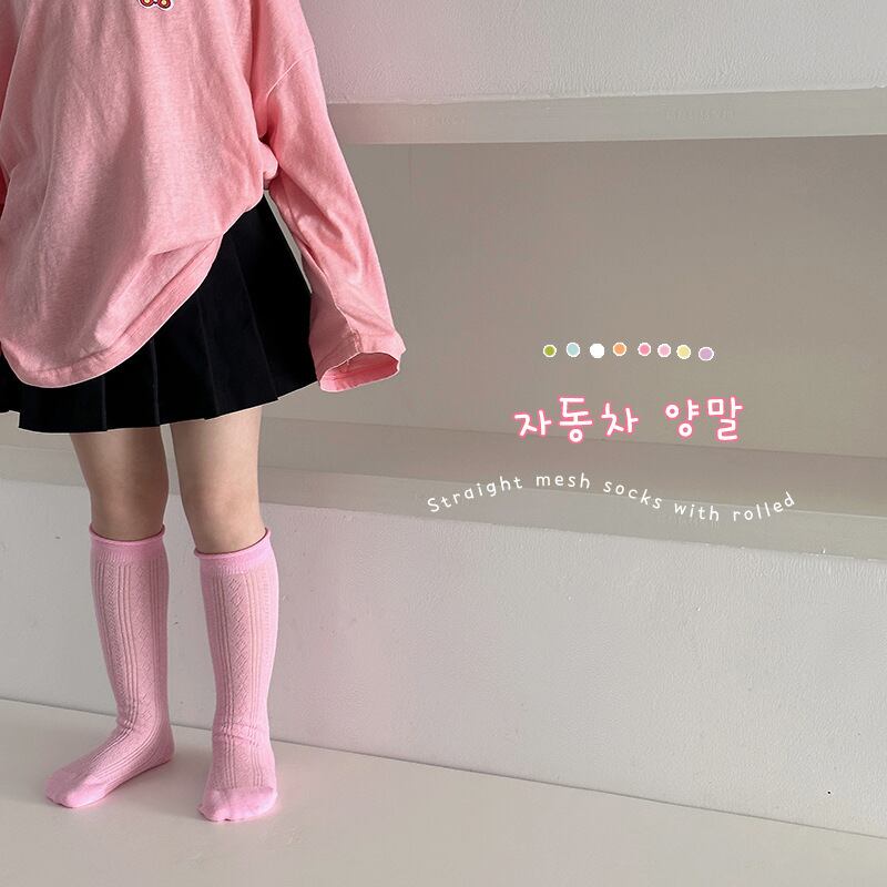 kids straight mesh socks with rolled edges ♡ 2~8y ♡8 candy color socks