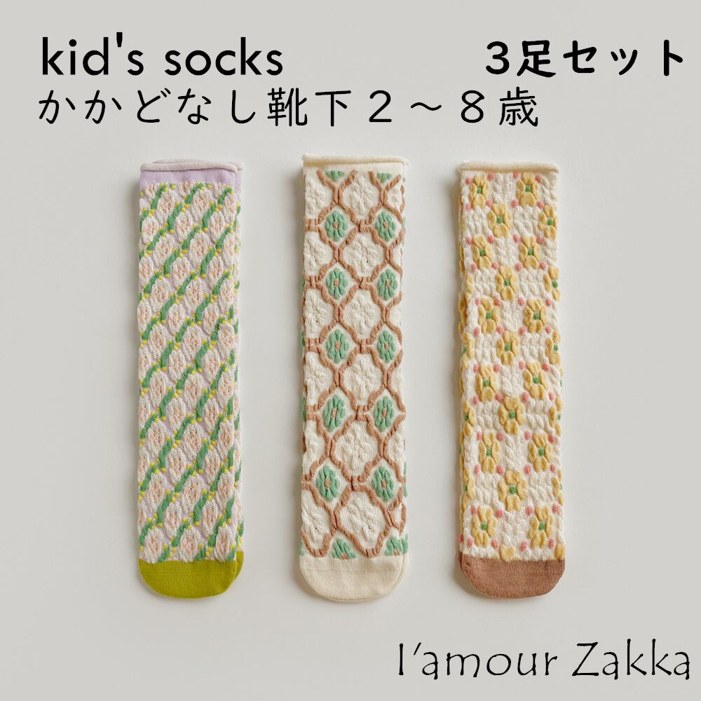 レトロなチューリップ柄が可愛いsocksの3足セットです♡